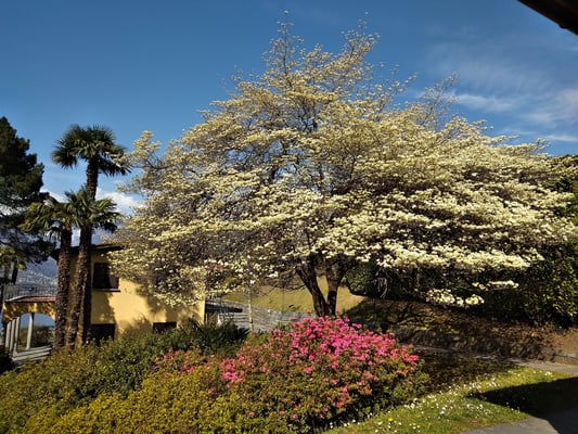 über dem Dorf Vira Gambarogno. Gönnen Sie sich erholsame Ferien in einer unserer Ferienwohnungen in wunderbarer Umgebung. Geniessen Sie den grossen Garten und das 20m grosse Schwimmbad. Das